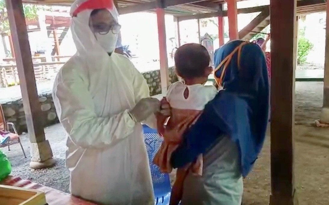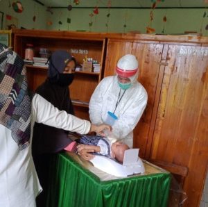 Petugas melakukan imunisasi dengan menerapkan protokol kesehatan. Para ibu yang hadir harus memakai masker ketika membawa anaknya imunisasi. Petugas dan kader juga selalu mengingatkan agar para ibu selalu memakai masker dan menjaga jarak ketika datang imunisasi dan setelah imunisasi selesai maka para ibu langsung pulang ke rumah.