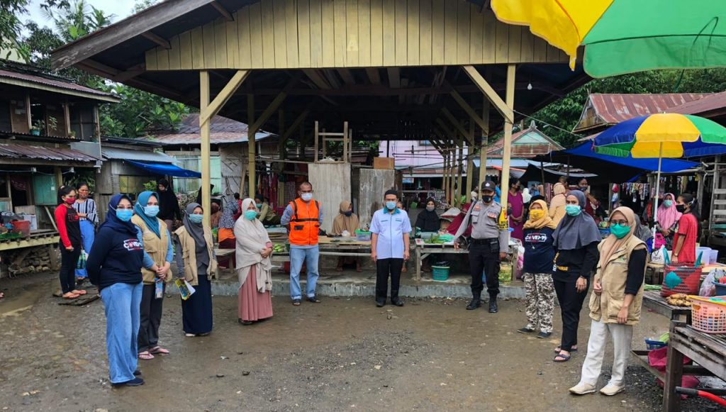 Beberapa kegiatan yang dilakukan pada saat pembinaan di pasar yaitu pemberian dan pemasangan masker bagi pengunjung yang tidak memakai masker, pemasangan stiker pencegahan corona, penyuluhan , koordinasi dan konsultasi dengan Pemerintah Desa setempat.